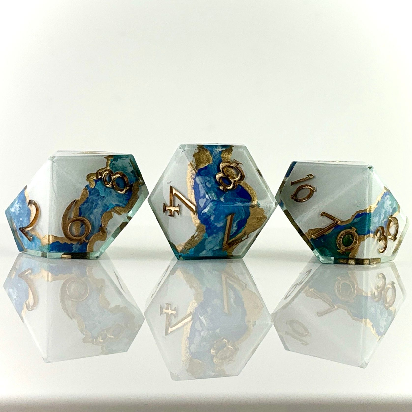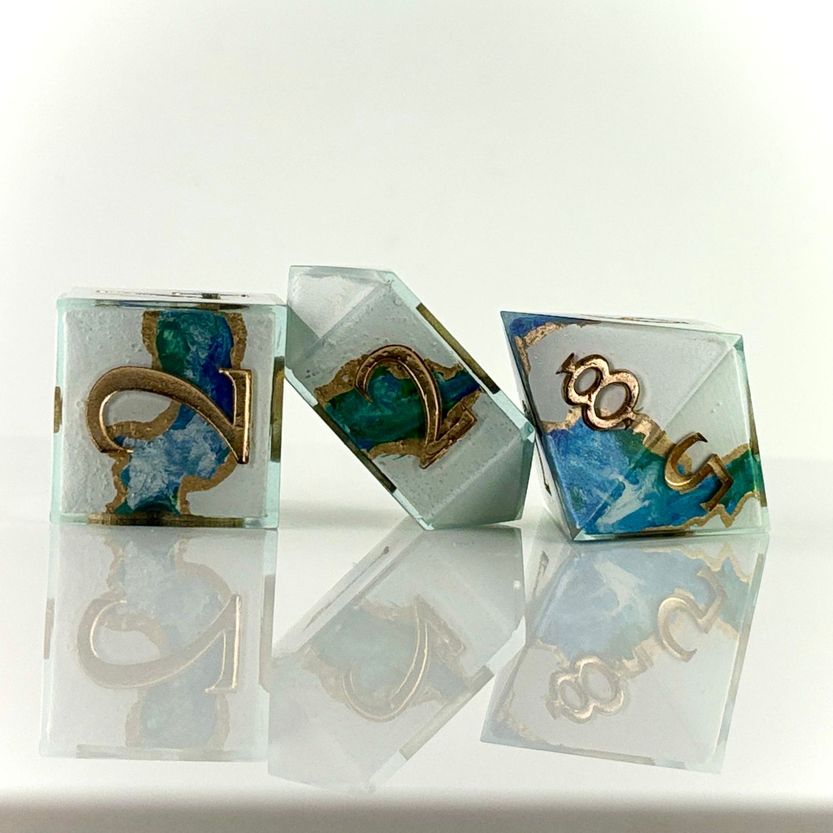 This painted set was inspired by a winter landscape about to enter spring with a river flowing through. It was this set that actually inspired me to create my geode flow designs.